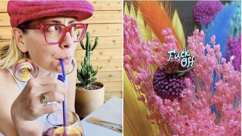 Kyrsten Sinema spent her Sunday sipping sangria in a pink newsboy cap and a ring that says Fuck Off. Want more from Teen Vogue. Only one image of her is discovered to this date.